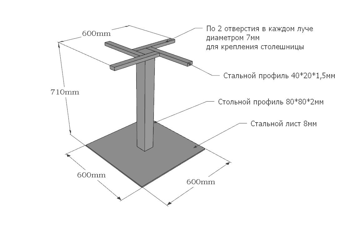 Стильное подстолье из стальных листов и профилей. Замечательно смотрится как в домашнем интерьере, так и в ресторанах/кафе.